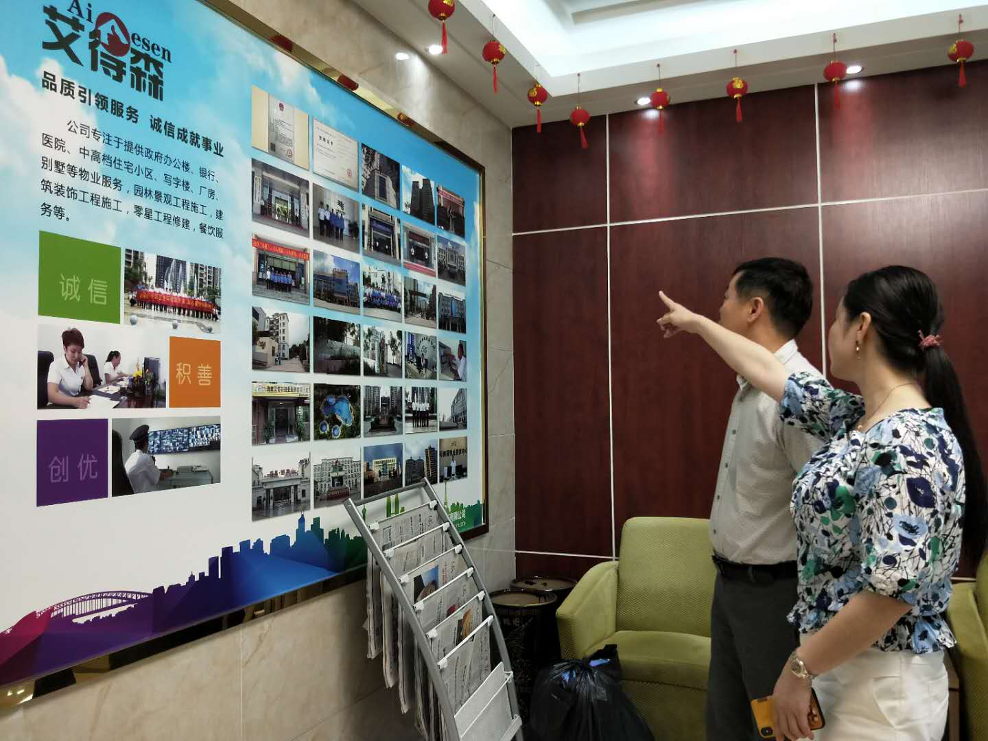 艾得森总经理(法人代表)王海霞,常德石门人,是一位资深的物业专家。王总详细介绍了公司通过加强综合办公室、市场部、品质部、物管部等直属部门的专业化管理,切实保障各分公司和各项目高质量高效率运行;计划将来拓展社区居家养老,医疗服务提供等新市场。王总希望借助商会平台,能认识更多行业精英,拓展业务,拓宽思路;同时建议组织旅游活动,让有共同兴趣爱好的企业家聚集一起,有深入交流机会。周建成副秘书长对艾得森这几年取得的成绩大加赞赏,自由贸易港,江东新区、总部经济,哪一个方面都离不开物业管理,我们商会有房产开发、学校、、酒店等方面的会员资源,下步可为艾得森提供对接。