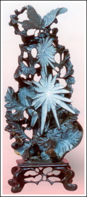 浏阳菊花石雕是一种利用石料的天然花纹,经人工雕琢而成的具有独特风味的工艺美术品,因产于浏阳而得名。早在清乾隆五年(1740),当地发现一种具有菊花形的白色花纹的岩石,老百姓叫它菊花石。石雕艺人利用它天然之形、纹和色,采用浮雕、圆雕、透雕和立体多层镂空雕等手法,精心雕琢出各种形象生动的艺术品,具有很高的审美价值。在近现代菊花石雕艺术家中,成就最高的是戴清升。他生于清末,13岁从师学习菊花石雕,以刻石终其一生。1912年刻制《仿古假山》,在南京“南洋劝业会”展出,获奖牌两枚;1915年刻《梅菊瓶》和《梅兰竹菊》横屏,参加巴拿马万国博览会,获金牌奖,被誉为“全球一”艺术品。自此创办“全球一”菊花石作坊,产品远销日本欧美。他在继承传统的基础上大胆创新,增加了花瓶、盆景、嵌屏等许多新品种,创作了梅菊、竹菊、蟹菊、蝶、鱼等不少新题材,并改进雕法,综合运用多种技法因材施艺,巧用石纹,使所雕菊花千姿百态,蟹蝶虫鱼形态乱真,情趣盎然,风格精细而又豪放,备受海内外人们的赞美。1979年,轻工业部授予戴清升“中国工艺美术家”称号